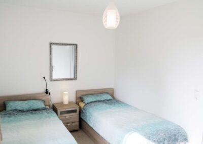 Zwei zusammenschiebbare Einzelbetten und Kommode